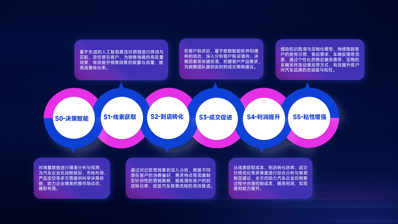 通过拓宽潜在客户来源、、、优化线索分配并提高到店转化率,,,,以增强销售效率。。同时,,利用线索数据不断优化分析模型,,,有效提升转化率,,,,扩大营销影响力。。